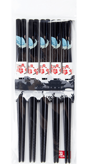 RESFOOD PREMIUM BAMBOO CHOPSTICKS BLACK, SET OF 5 PAIRS IN A BLISTER