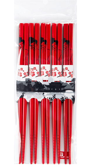 RESFOOD PREMIUM BAMBOO CHOPSTICKS RED SET OF 5 PAIRS IN A BLISTER