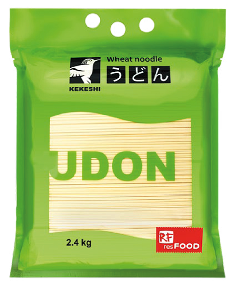 The secret of KEKESHI udon is specially selected premium wheat flour, which gives the noodles a delicate wheat flavor and pleasant aroma. This type of wheat noodles is used for cooking soups, wok dishes, dishes with all kinds of meat and seafood. Udon harmoniously combines with mushrooms, vegetables and all kinds of sauces of Asian cuisine. Udon Kekeshi has a traditional size in width (3 mm) and thickness (1.3 mm). UDON KEKESHI noodles are available in both small 0.3 kg and large 2.4 kg packages.